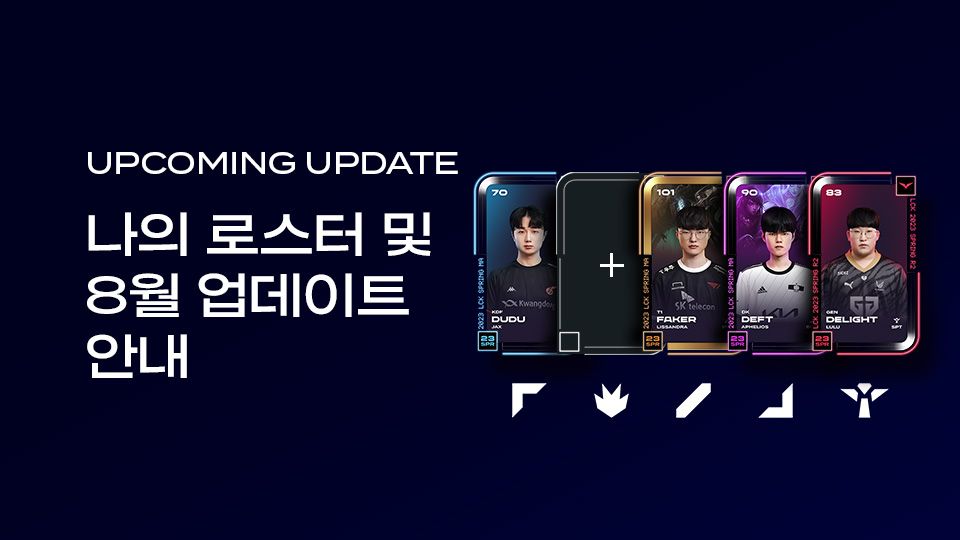 8月的更新只是我们未来更新的序幕。通过收集的卡片,可以享受的乐趣和内容将继续更新。我们将尽最大努力,与大家一起提供新的LCK体验。请继续关注我们,并期待大家的意见和支持。